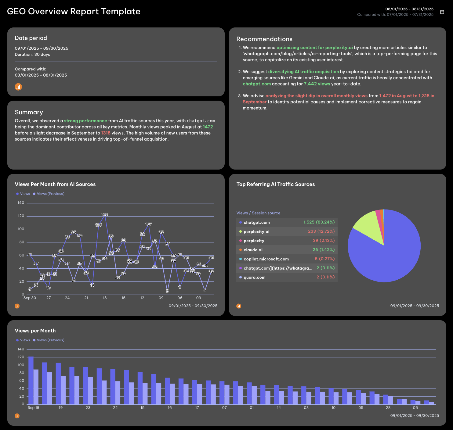 - Submit content to AI engines like ChatGPT and Perplexity via Bing integration