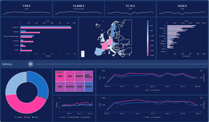 With Adverity, you can transfer data into databases, data lakes, cloud storage, visualization, and BI tools. Adverity helps users automate advanced data integration and governance so marketing teams can focus on managing their data and uncovering valuable insights.