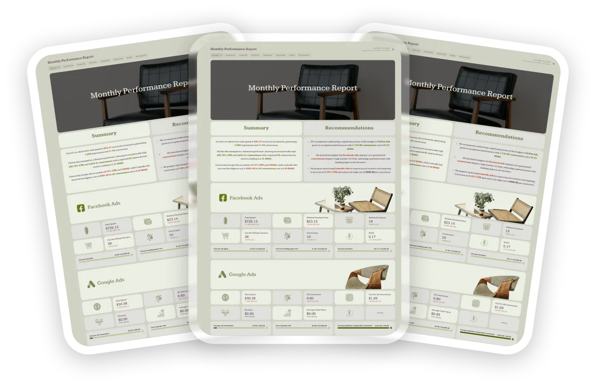 Connect all the integrations you need and analyze performance across channels in one place. Build dashboards and reports powered by fast, consistent data, no manual stitching or workarounds required.