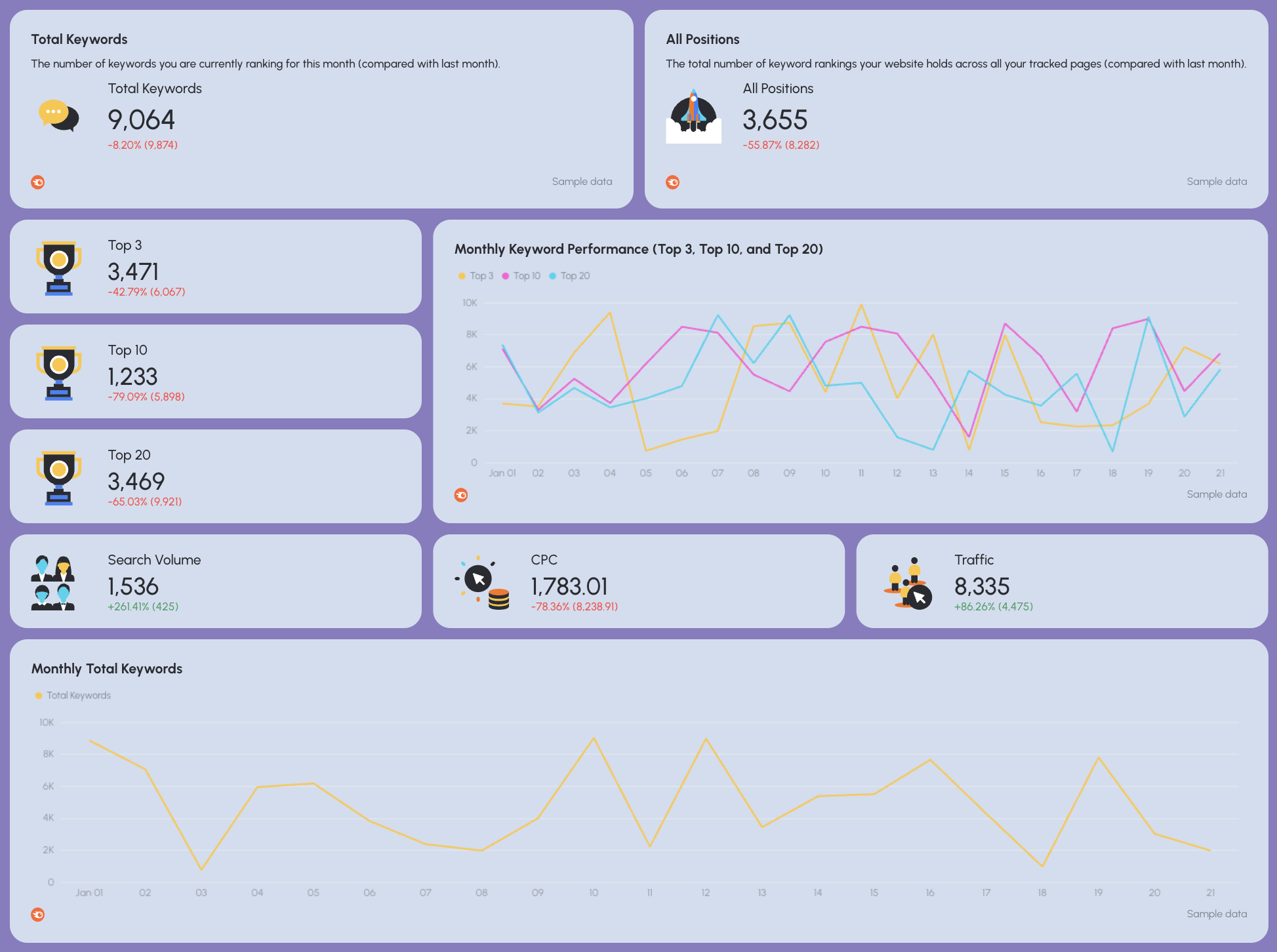 - Keywords ranking in positions 1–10